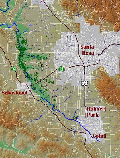 The Laguna itself is the center of a significant floodplain. During peak storms the flooding near the Laguna reduces potentially disastrous flooding downstream on the Russian River.